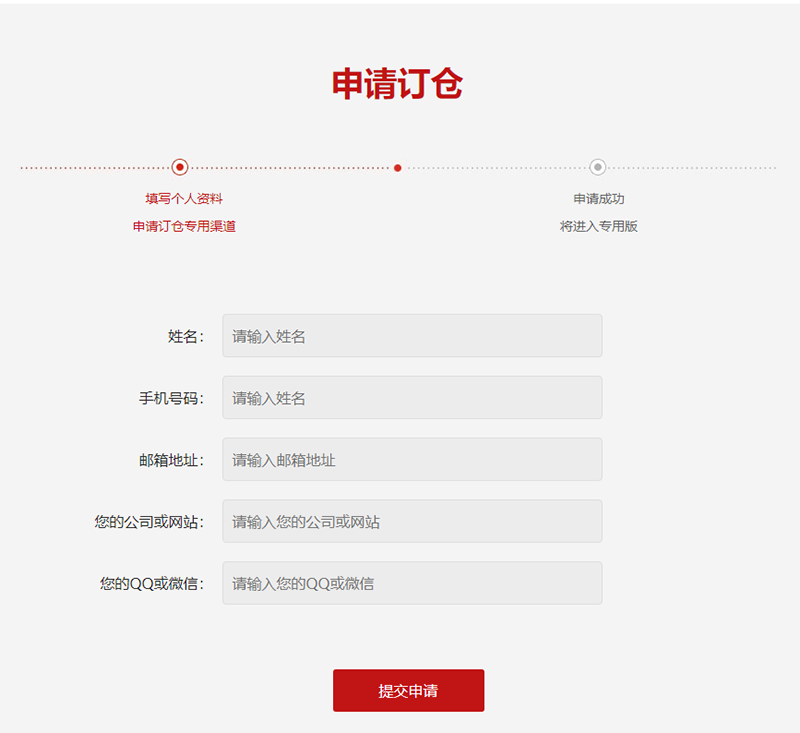 一般包括姓名、手機號碼、郵箱地址、你的公司或者網站名、聯(lián)系QQ或微信,填寫完畢就提交申請~是不是很簡單呢?