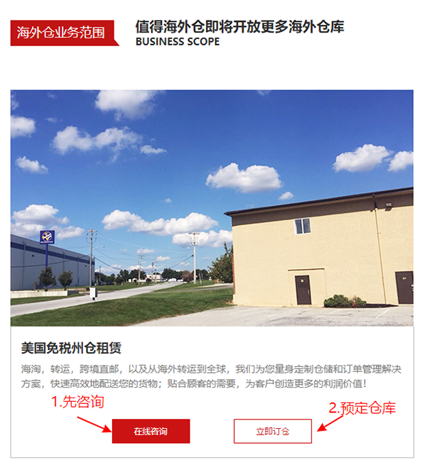 然后我們找到租賃美國倉庫的欄目,建議大家先咨詢再訂倉哦!